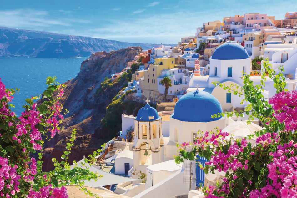 Transfer zum Flughafen Santorin und Rückflug nach Wien/München.