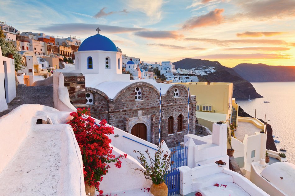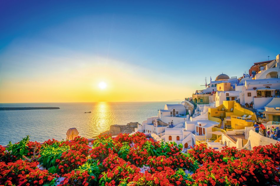 Linienflug von Wien/München über Athen nach Santorin. Transfer zum Hotel. Zimmerbezug im gebuchten Hotel. Am Abend Spaziergang entlang des Strandes zum Fischessen in ein wunderschönes Restaurant, danach zurück ins Hotel, auch zu Fuß.