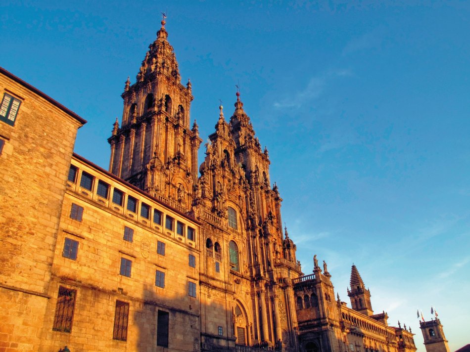 Dieser Tag ist der Besichtigung von Santiago gewidmet, einem bedeutenden christlichen Wallfahrtsort. Bei einem Rundgang durch die Altstadt sehen Sie den Plaza del Obradoiro, umgeben vom Rajoy-Palast, dem Hostal de los Reyes Católicos und der Kathedrale mit dem Grab des Apostels Jakobus. Sie erfahren alles Wissenswerte über den Jakobsweg. Die Altstadt und die Kathedrale sind seit 1985 UNESCO-Weltkulturerbe. Nächtigung in Santiago de Compostela.