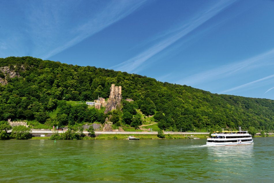 Wir durchfahren den schönsten Streckenabschnitt des Mittelrheins mit dem Loreley-Felsen, der sich 130 m hoch über den Fluss erhebt. Entlang des Rheins werden wir zahlreiche Burgen und Schlösser vom Sonnendeck aus bewundern können. Nach dem Mittagessen können wir das Weindorf Rüdesheim erkunden. Bei einer Fahrt mit dem Winzerexpress* gelangen wir bis zur bekannten „Drosselgasse“.
